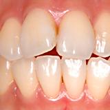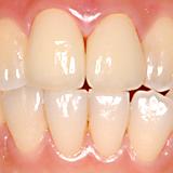 | 矯正する時間がない患者さんの前歯二本をセラミックの歯で審美的に改善しました。(右上一本だけでは右上の歯だけが小さくなります) |