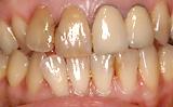 | 見た目の美しさだけにとらわれてはいけません。機能性を十分に満たした美しさが本当の審美歯科です。またそれが永続性のあるものでなければ意味がありません。歯グキの色素を除去し綺麗なピンク色にし、下の前歯を漂白し(両方とも殆ど痛みはありません)上の前歯にセラミック冠を被せました。 |