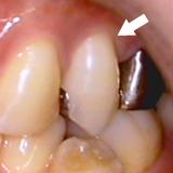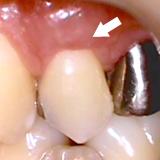 | 歯ぐきが薄い所は歯ぐきが下がりやすです。詰め物をしても詰め物の刺激でまた歯ぐきが下がってしまいます。再生療法により、露出根面をカバーし厚い歯ぐきを獲得しました。審美的にも改善され、歯ぐきも下がりにくくなりました。現在の歯科医療は進んでいます。 | ![]() |