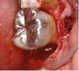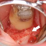| 真ん中の歯の左側の骨を再生させました。 (おわかり頂けますか?) |